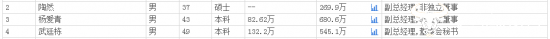 此外,在公司的三位副总经理中,武廷栋的薪酬排在第二位。去年年薪最高的是杨爱青,拿到了680.6万;最低的陶然拿到了269.9万。