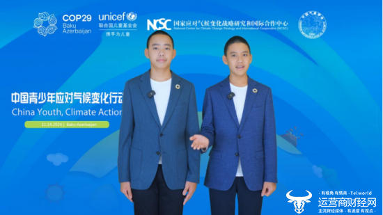 11月14日,第29届联合国气候变化大会(《联合国气候变化框架公约》第二十九次缔约方大会,COP29)“气候影响下的脆弱城市”主题边会召开。继去年在COP28上代表中国青少年表达对气候变化的关注后,两位中国深圳少年李秉宸、李秉恒再返COP29讲坛,用视频连线的方式分享了他们过去一年中为影响更多同龄人关注气候问题做出的种种努力和亲身感受,继续呼吁人们从身边小事做起,共同参与气候变化议题,也用脚踏实地的行动展示了年轻一代对气候问题信守承诺、积极行动的态度和决心。