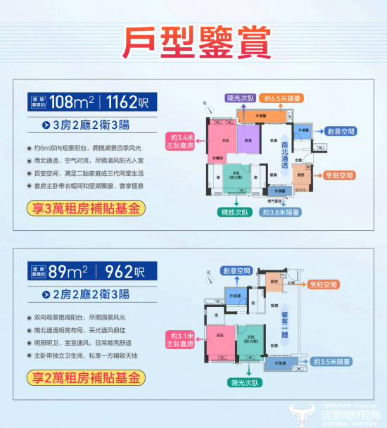 金秋11月,凡购买任意户型的业主均可享受全屋家私家电,真正做到拎包入住。此外,针对暂时未入住的业主,项目还提供租房补贴政策,其中约89㎡户型可获得2万元租房基金,而约108㎡户型则可享受3万元租房基金的支持。