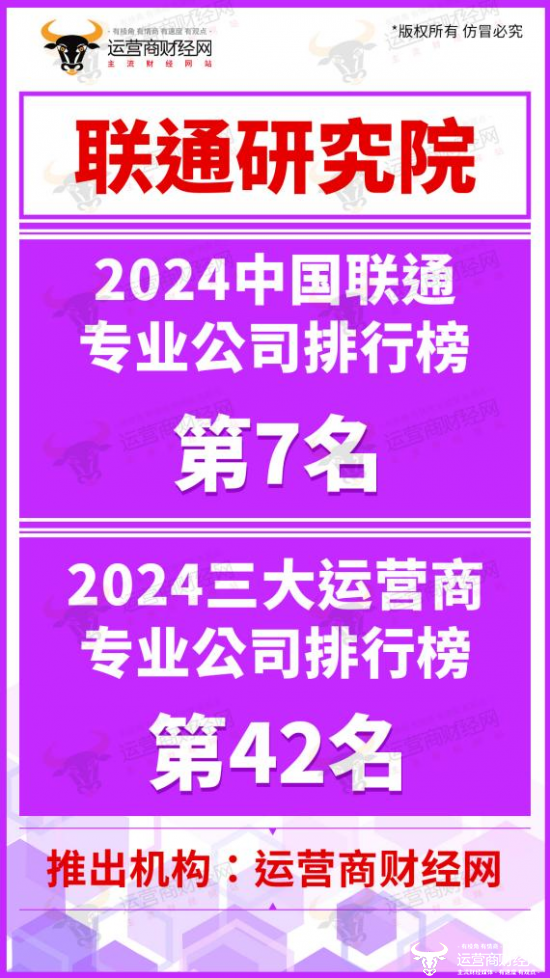 其次,在“2024三大运营商专业公司排行榜”中,联通研究院排名第42位。