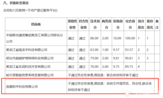 近日,浪潮软件科技参加黑龙江省某地不动产登记中心互联网+不动产登记服务平台项目,竟然未通过符合性审查,到底是怎么回事?