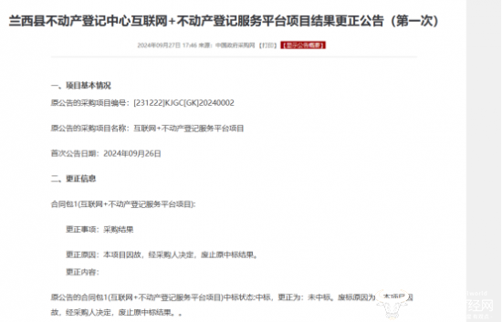9月26日,项目结果公布,黑龙江省铸云网络科技中标,成交金额350万元,不到预算的40%,折扣力度非常大。就在结果公布后一天,9月27日,项目结果更正:项目因故,经采购人决定,废止原中标结果。