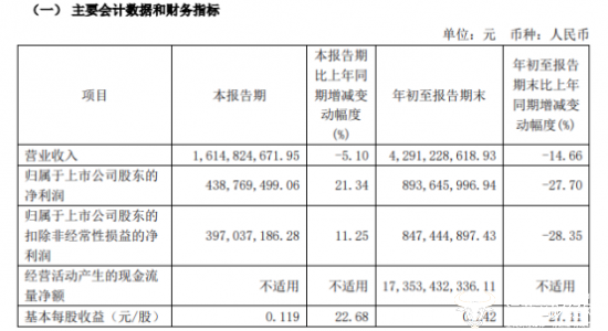值得一提的是,据国金证券2024年第三季度报告显示,在前三季度公司营业收入为42.91亿元,较上年同期缩减14.66%;归属于上市公司股东的净利润为8.93亿元,较上年同期缩减27.7%;基本每股收益为0.242元/股,较上年同期缩减27.11%。