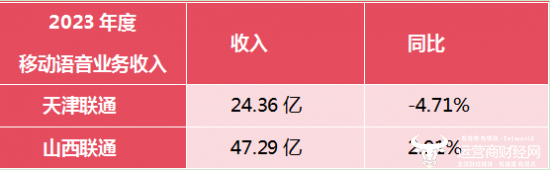 在移动语音业务上,天津联通2023年度实现收入为24.36亿元,同比负增长为4.71%;