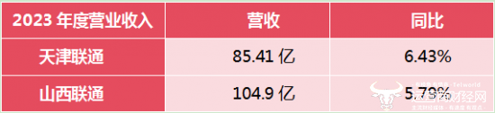 2023年度,天津联通营收为85.41亿元,同比增长为6.43%;