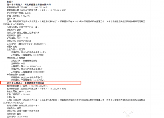 标段6中标候选人是河南省通信工程局有限责任公司、厦门纵横集团建设开发有限公司;