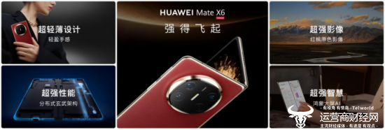 华为常务董事、终端BG董事长、智能汽车解决方案BU董事长余承东表示:“折叠引领者,巅峰再跨越,HUAWEI Mate X6从内到外强得飞起,为消费者带来全面革新的折叠屏体验。”