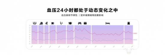 人体血压在一天之内是不断变化的,昼夜间具有明显的节律性,单次测量难以全面反映血压的真实情况;高血压还具有隐蔽性,部分消费者会因为在医生面前紧张血压升高,而在家中恢复正常,出现检测不准确的情况;此外,夜间血压的升高,与心血管事件的发生密切相关。因此,连续、多次、规律的血压检测显得尤为重要。