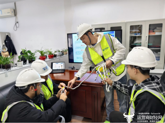 随后,网络维护人员进行了安全绳的实际操作练习,从检查安全绳的外观和结构、固定安全绳到解开安全绳,每一个环节都进行了现场操作,确保人人都会准确使用安全绳。