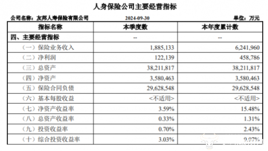 值得一提的是,据友邦人寿2024年第3季度偿付能力报告显示,在前三季度公司累计保险业务收入达到624.19亿元,净利润为45.87亿元,净资产收益率达到了15.48%,综合投资收益率达到9.07%。