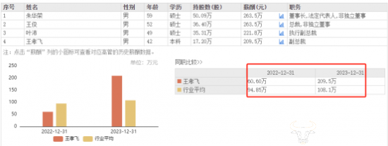 东方财富网显示,2023年王孝飞从公司取得了209.5万元的薪酬,较上一年增长了3倍多。2022年,王孝飞的薪酬为60.6万元。