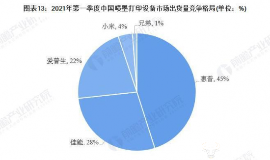 根据IDC的数据,2021年第一季度,中国喷墨打印设备市场出货量排名前五的厂商分别是惠普、佳能、爱普生、小米和兄弟,其中惠普占比高达45%。