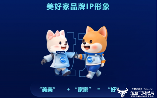 “美好家”品牌IP形象融合“宠物犬+机器人”的元素,代表忠诚与守护。IP形象由“美美”(左侧)与“家家”(右侧)组成,用不同性别的代言形象,组成“好”字,诠释了“美好家”的品牌精髓。
