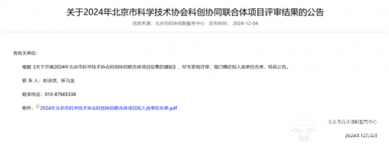 附件:2024年北京市科学技术协会科创协同联合体项目入选单位名单