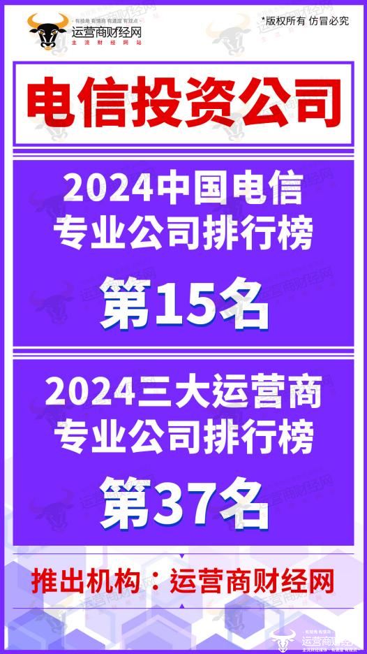 据了解,在运营商财经网独家推出的“2024中国电信专业公司排行榜”中,电信投资公司排名第15;