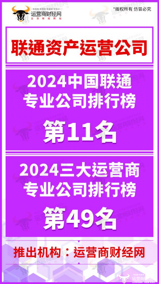 另外,在“2024三大运营商专业公司排行榜”中,联通资产运营公司排业内第49名,处于中游位置。