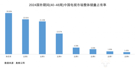 不仅如此,据奥维云网数据显示,国补以来(9月25日-12月1日),国内电视市场整体销量较同期增长28.41%,海信系电视销量占比26.93%,居行业第一。而在百吋+尺寸段,海信系电视销量占比高达37.61%,同样位居行业首位。