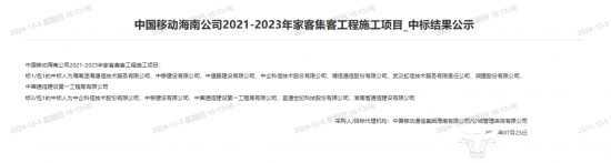 前两次招标结果显示,此前成功中标的企业包括:海南迪海通信技术服务有限公司、中移建设有限公司、中通服建设有限公司、中企科信技术股份有限公司、博信通信股份有限公司、武汉虹信技术服务有限责任公司、润建股份有限公司、中国通信建设第一工程局有限公司、宜通世纪科技股份有限公司、湖南省通信建设有限公司、南京欣网通信科技股份有限公司、中国通信建设第四工程局有限公司等