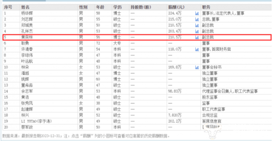 此外,据东方财富网统计,在2023年黄奕林的薪酬为210.5万元,比另一位副总裁孔祥杰的薪酬203.4万元高一些。但总体来看,兴业证券高管薪酬相差并不大。
