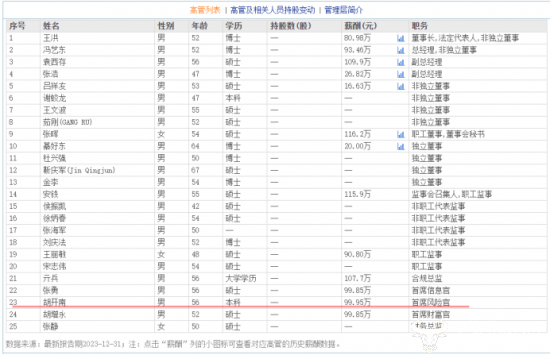 据东方财富网统计的数据显示,胡开南在2023年的薪酬为99.95万元,虽然不如副总经理袁西存的109.9万元,但比总经理冯艺东薪酬93.46万元多一些。