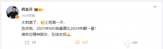 周钘还公开透露,2025年名爵销量目标是比2024年翻一番。面对如此情况,外界对周钘很期待。