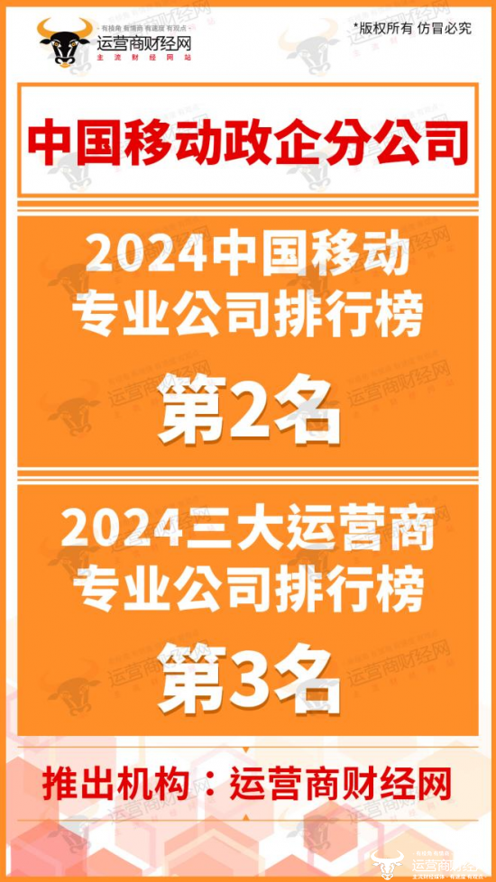 在“2024三大运营商专业公司排行榜”中,中国移动政企分公司排名第3。