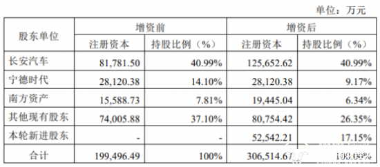 长安汽车披露的公告显示,长安汽车、南方资产、安渝基金、交银投资等13家投资方拟合计增资突破110亿元,其中长安汽车增资45.51亿元。此次增资完成后,长安汽车对阿维塔的持股比例保持不变,依旧为40.99%。