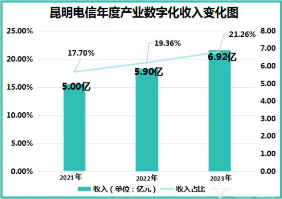 2023年度,昆明电信政企业务收入为6.92亿元,占总营收的比重为21.26%。