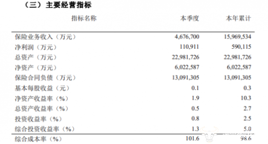 此外,据太保产险第三季度偿付能力报告显示,在今年前三季度公司累计保险业务收入为1596.95亿元,相较于上年同期的1482.14亿元有所增加;同时,净利润59.01亿元较上年的45.11亿元也有所增长。