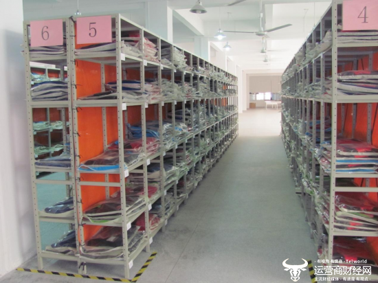 工厂货架摆放着打包待发的冲锋衣。洪山|摄