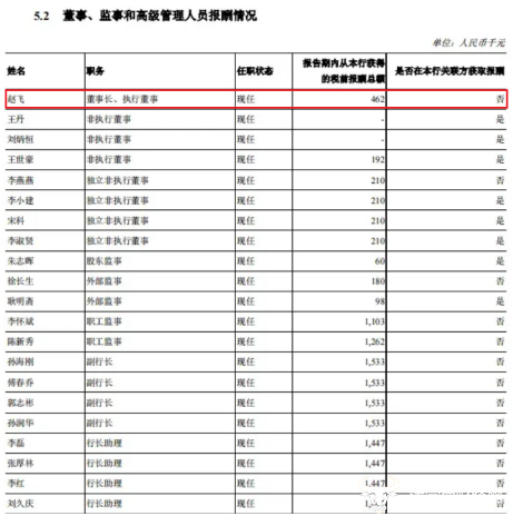 对此,赵飞表示高管薪酬在与经营业绩挂钩的基础上,自2024年起分两年每年压降10%。去年,赵飞担任行长和董事长的薪酬相加一共是103.2万,而该行几位副行长薪酬都是153.3万,几位行长助理薪酬都是147.7万,作为董事长的赵飞薪酬反而是最低的。