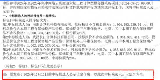 在今年9月3日,中国移动2024年至2025年集中网络云资源池六期工程计算型服务器采购项目正式进行公开招标。