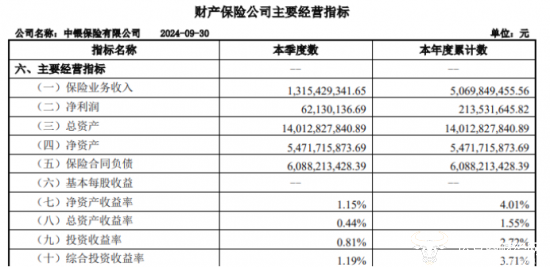值得一提的是,在崔大杰上任一年的时间里,公司总体业绩稳定。据中银保险2024年第三季度偿付能力报告显示,在前三季度公司累计保险业务收入约为50.70亿元,较上年同期的49.06亿元微增;净利润约为2.14亿元,与去年同期的2.13亿元相差不大。