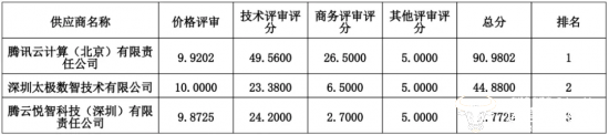 从表中可见,分数差距主要是在技术评分和商务评分上,价格差距不大,得分差这么多,腾讯云赢得实在太轻松了。
