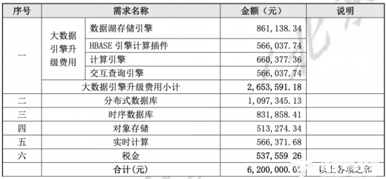 12月16日,该项目公布中标公告,腾讯云以620万的投标报价中标,分项报价内容如下表:
