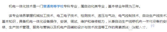 此外,他在20岁时就已经加入公司,一般本科是很难在20岁就毕业工作的。而机电一体化这门专业在百度词条中显示为“专科专业”,所以湖南工业大学的机电一体化专业是不是该校的专科专业呢?