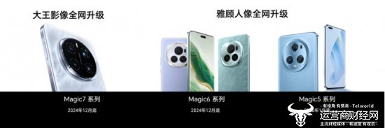 发布会最后,荣耀宣布“大王影像”将于12月底在Magic7系列上全网升级;广受好评的雅顾人像功能,也将会在2024年12月底和2025年1月底,依次在Magic6系列和Magic5系列上全网升级,普惠更多Magic系列老款机型,让更多用户体验到荣耀影像提升的优异成果。