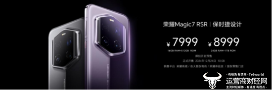 荣耀Magic7 RSR保时捷设计提供超跑原厂金属质感的“玛瑙灰”和“普罗旺斯紫”两种配色,16GB+512GB和24GB+1TB两个容量版本售价分别为7999元和8999元。荣耀Magic7 RSR保时捷设计在发布会后即刻开启预售,并将于2024年12月24日10:08在荣耀商城、各大授权电商、荣耀体验店、授权零售门店正式开售,同日也在保时捷中心同步开售。