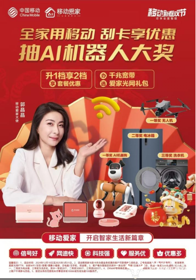 目前,云南移动新春刮刮卡活动正在如火如荼地进行中,只要是订购了以上业务的用户,即可获得刮金卡抽大奖机会。奖品不仅有AI机器狗和无人机,感受前沿智能科技的魅力;还有电冰箱、洗衣机等实用家电,为日常生活增添更多便捷!此次活动将持续至2025年3月31日,感兴趣的用户可通过中国移动云南APP首页或到线下营业厅参与活动,共享这场丰厚的福利盛宴!