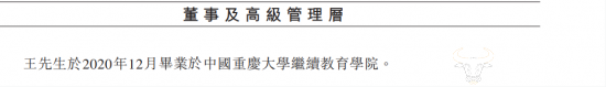 啄木鸟招股书上有关王国伟的过往从业履历信息并不多,而令人注意的是,资料显示他于2020年12月毕业于重庆大学继续教育学院。