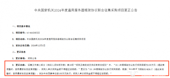 12月5日,中央和多个省采购中心联合发布《2024年度通用服务器框架协议联合征集采购项目》征集公告。