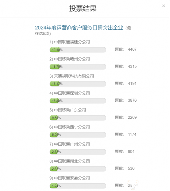 紧追其后的是赣州移动,票数差距较为微弱,位列第二。