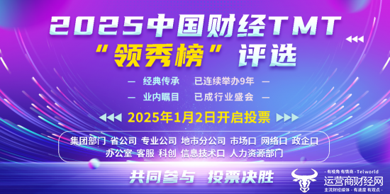 新年伊始,万象更新。2025年1月2日,运营商财经网举办的年度中国财经TMT“领秀榜”评选已正式开始,不仅围绕通信运营商,还将聚焦互联网、金融、汽车、手机数码、房地产、食品、通信设备、IT、家电、家居等行业,进行关于2024年度优秀的企业、产品、服务、创新等的投票。