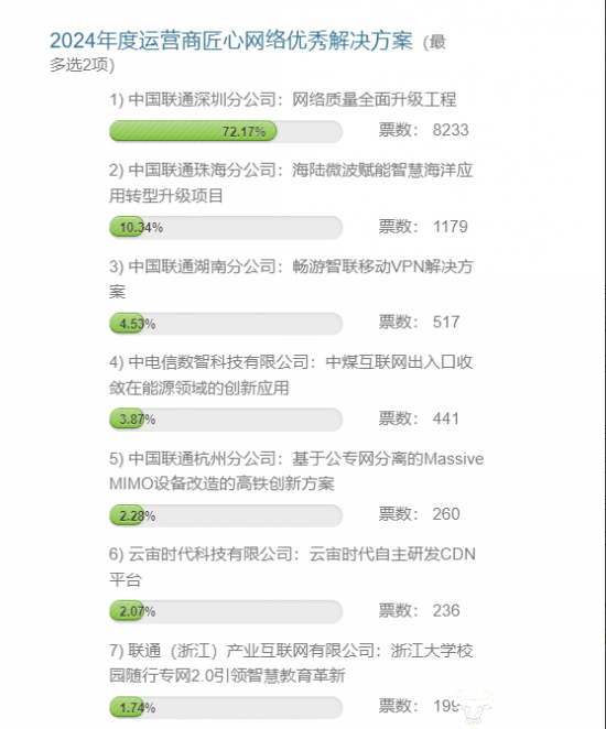 位列第二的是珠海联通打造的“海陆微波赋能智慧海洋应用转型升级项目”,其票数与第三相比也具有一定的优势,但差距并不算大。