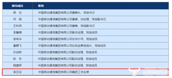 然而近日,运营商财经网发现,在中国移动的官方网站上,李丕征的名字依然在列,且职位标注为中国移动集团工会主席,排在最新上任的集团副总经理程建军之后,这也侧面表明了李丕征还有个职务,但按理退休了。