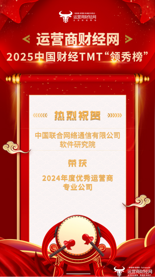 盛典上,中国联合网络通信有限公司软件研究院凭借其过硬的专业素质获得了“2024年度优秀运营商专业公司”奖项,这一奖项的获得离不开去年联通软研院在联通公众APP开发上的创新成果等。