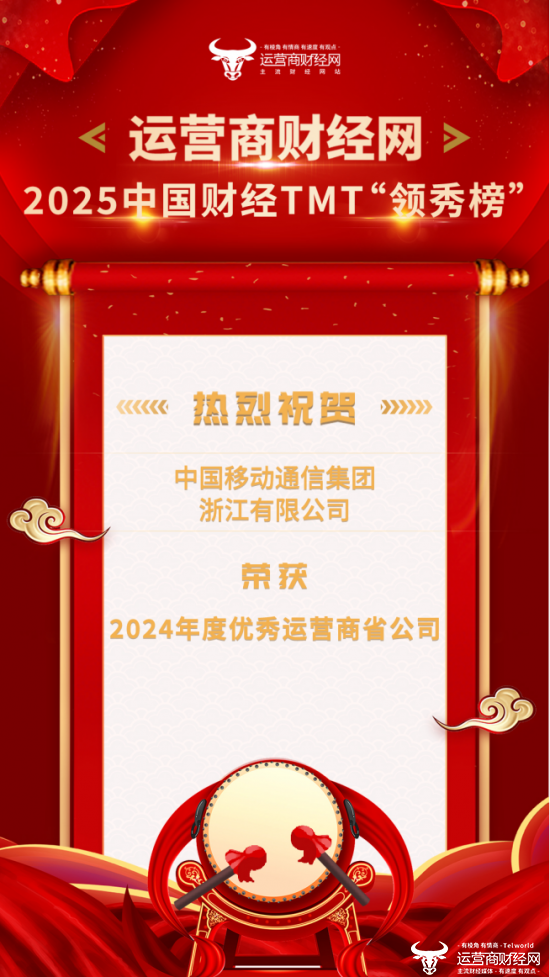 由知名财经媒体平台——运营商财经网举办的2025中国财经TMT“领秀榜”盛典于1月16日在北京盛大召开。在此次盛典中,经过严格评选与激烈角逐,浙江移动凭借其在2024年的卓越表现与显著成就,荣耀上榜“2024年度优秀运营商省公司”。