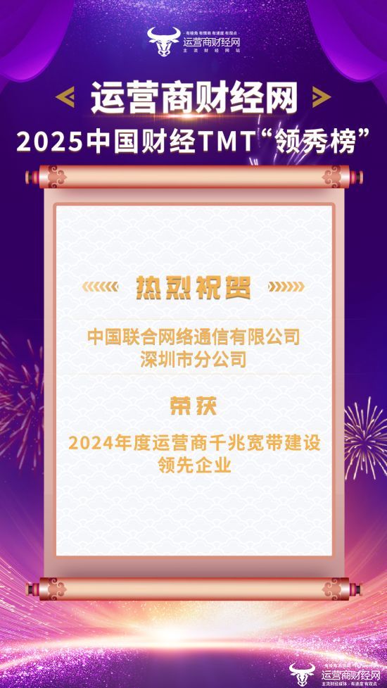 其中,中国联合网络通信有限公司深圳市分公司凭着优异的表现崭露头角,荣获“2024年度运营商千兆宽带建设领先企业”奖项!