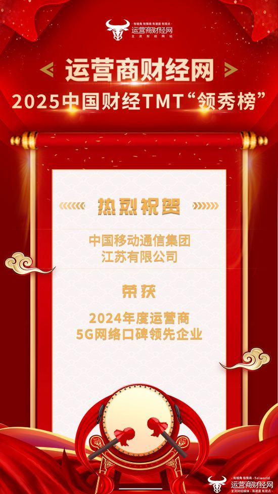 凭着突出的表现和卓越的业绩,中国移动通信集团江苏有限公司在本次评选中获得“2024年度运营商5G网络口碑领先企业”奖项,恭喜!