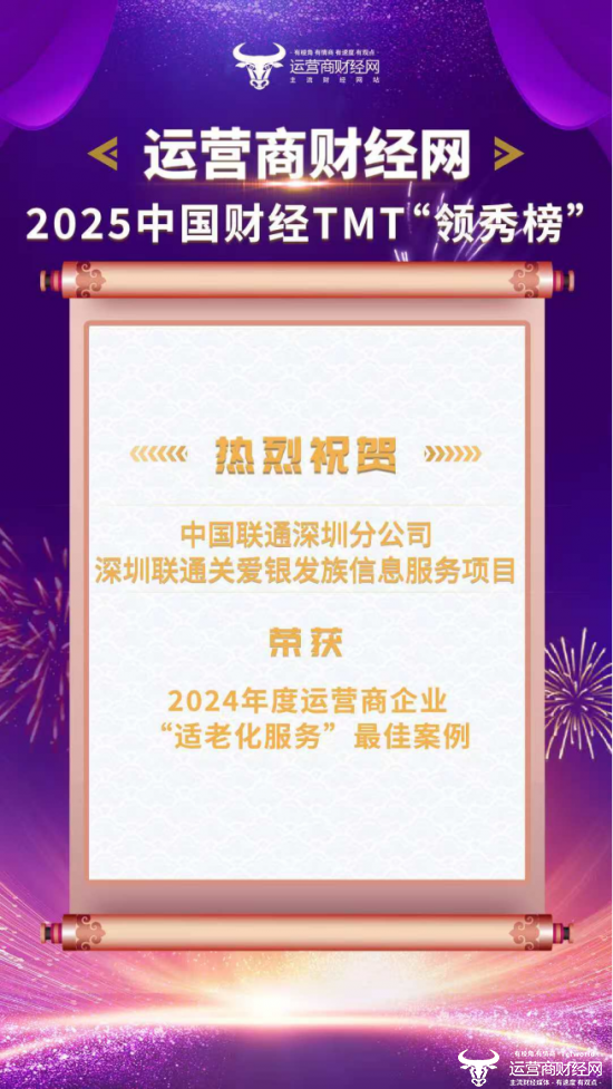 其中,中国联通深圳分公司凭借深圳联通关爱银发族信息服务项目,斩获“2024年度运营商‘适老化服务’最 佳案例”的奖项。